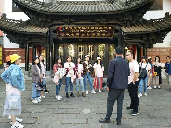 深入景区交流,体验民俗文化。研学期间,师生走访参观了云南具有地域代表性的景点九乡石林,与景区交流探讨景区发展和旅游市场营销等方面的话题。参观体验云南民俗文化代表性景点云南民俗村、丽江古城,学习感受少数民族的风情及文化。将《民俗文化》课堂搬到景区,老师在民俗村给员工就云南的风土人情上了生动的一课。