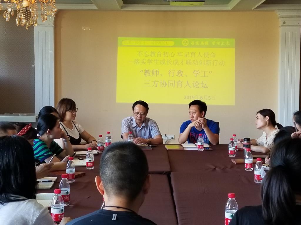 为切实落实员工成长成才联动创新行动,不忘教育初心,牢记育人使命,必一运动于2019年6月5日在2303开展必一运动第十二届管理论坛之三方协同育人论坛。本次论坛由总支周万春书记主持,必一运动李安平经理、组织员兼办公室主任周艺老师、学院全体行政人员、辅导员、教师代表出席此次论坛。