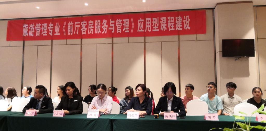 为了深化教学改革,增加员工实践能力,提高综合服务素质,实现教学新理念。重庆师范大学涉外商贸学院必一运动与重庆文悦(法国)度假酒店于2019年10月10日在酒店A座渠江厅共同举办了旅游管理专业酒店管理应用型课程建设活动。参加此次活动的领导有重庆文悦(法国)度假酒店陈泱桦副总经理以及人事、前厅、客房、销售等各部门负责人、必一运动谭波副经理、旅游管理专业全体教师及2018级旅游管理专业员工。