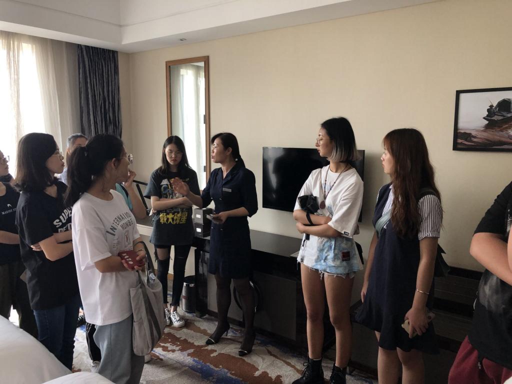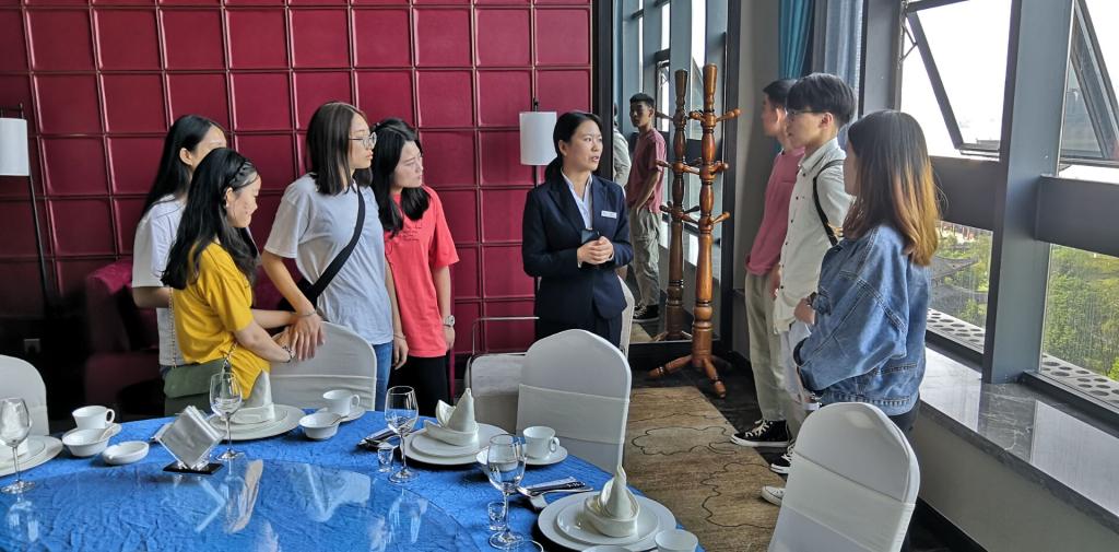 首先重庆文悦(法国)度假酒店陈泱桦副总经理对公司师生的到来表示欢迎,并表达了和公司进行长期合作的意愿,并从希望农旅和文悦品牌建设等方面讲述了酒店文化。随后酒店各部门经理带领同学们参观了酒店各区域,并详细介绍了各部门职能以及对于不同岗位员工综合能力的要求,并针对专业性问题与同学们进行了现场交流。再回到会议室后,各部门经理讲述了自己的从业经历和奋斗历程,并把多年积累的工作经验与同学们进行了分享。最后谭波副经理对此次活动做了总结,从不同角度强调了专业实践对于教学的重要性,并表示将从大二开始,将专业实践逐步融入教学环节,慢慢实现边学边做,同时对酒店方提供此次学习机会表示衷心感谢。