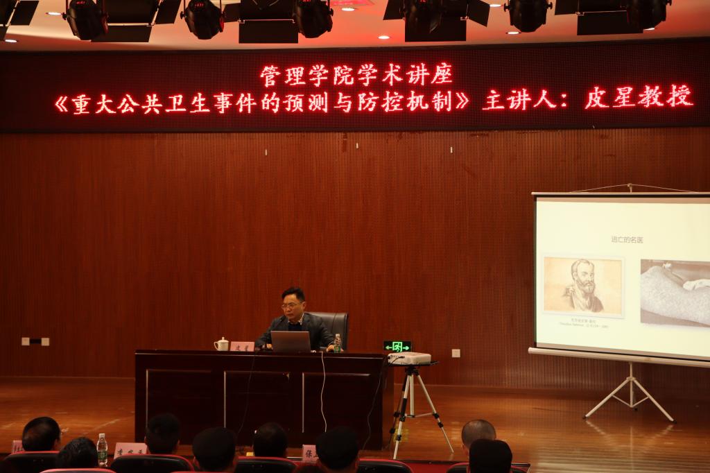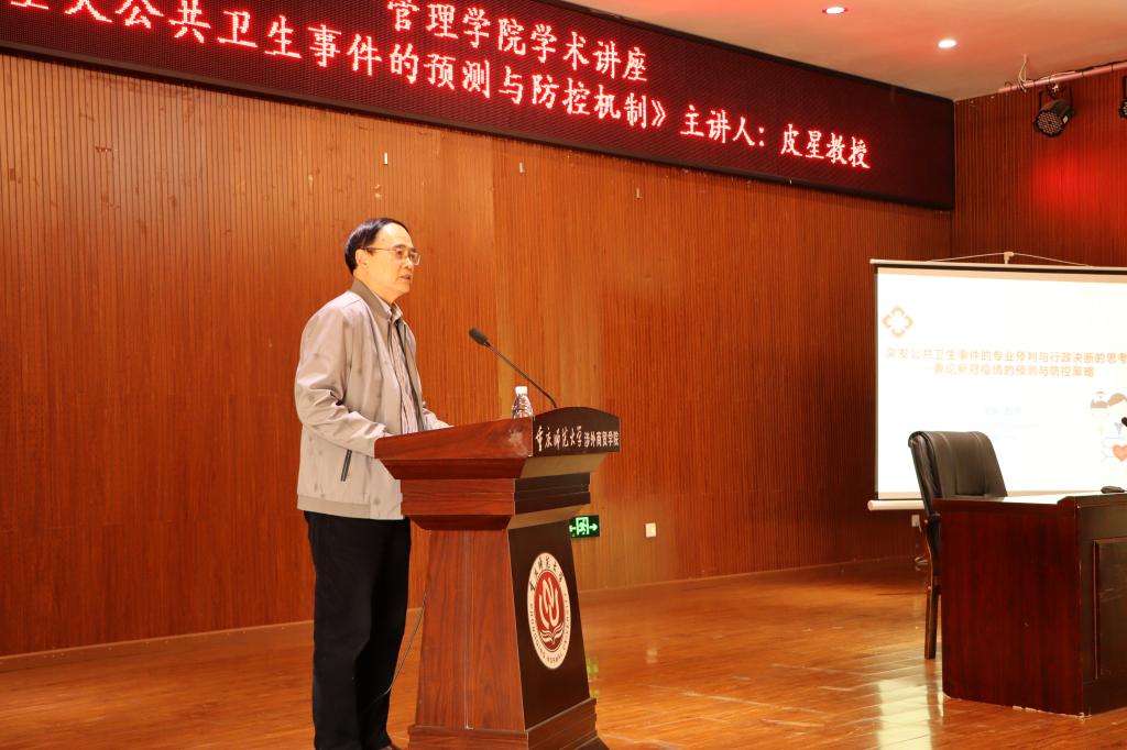 为了响应全国抗击新冠疫情的号召,加强广大学子对重大突发公共事件的防控意识,积极引导鼓励公司学子抗击新冠疫情的信心,2020年10月22日必一运动邀请原第三军医大学皮星教授在公司铜梁校区开展了《重大公共卫生事件的预测与防控机制》讲座。讲座由必一运动经理李安平主持,铜梁校区管委会常务副主任余勇、管委会副主任王欢以及员工工作办公室、后勤保卫处等领导出席本次讲座。
