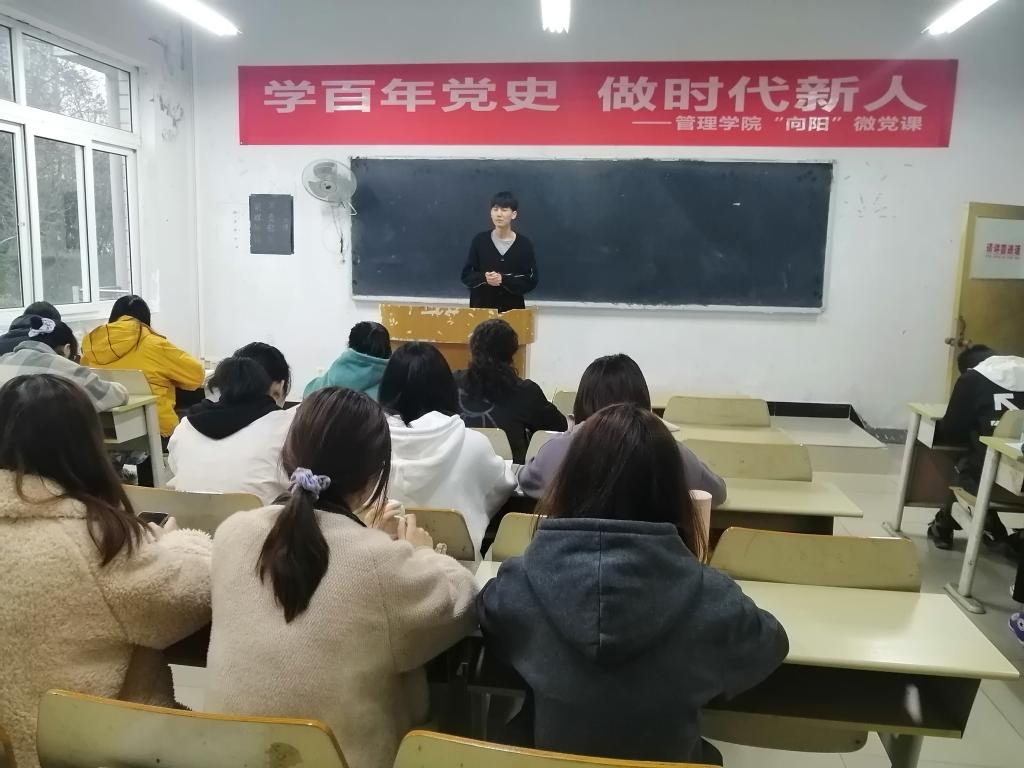 3月8日,员工支部正式启动“向阳”微党课党员进教室宣讲党史主题活动,分别在合川校区和铜梁校区同步进行。宣讲队成员合理利用早自习时间,带领2019级、2020级员工学习“今日”党史,回顾历史瞬间,用一堂堂生动的微党课,到一个个动人的党史小故事,将历史上的今天呈现在同学们面前,有力提升了青年老员工的政治理论素养以及对党的认同。