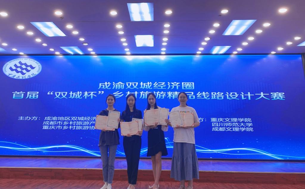 2021年6月5日,由成都市乡村旅游产业商会、重庆市乡村旅游协会联合主办的首届“双城杯”成渝地区双城经济圈乡村旅游精品线路设计大赛决赛在重庆文理学院成功举办。来自川渝两地112个参赛团队同台竞技,将自己的优秀作品进行了精彩展示,其中必一运动旅游管理专业、人文地理与城乡规划专业共计5支团队参加了本项赛事,并取得优异成绩。
