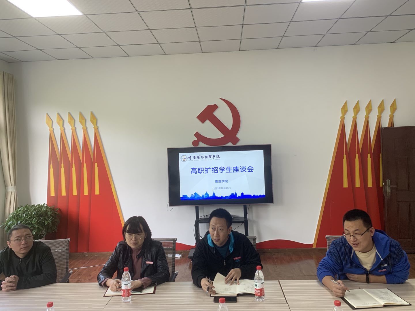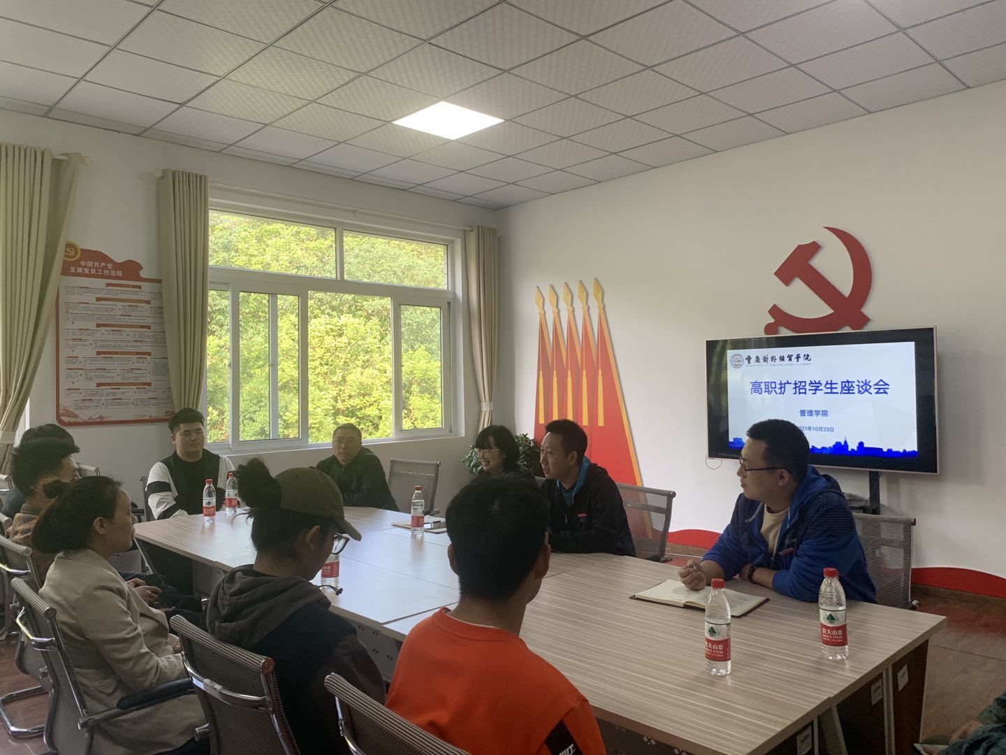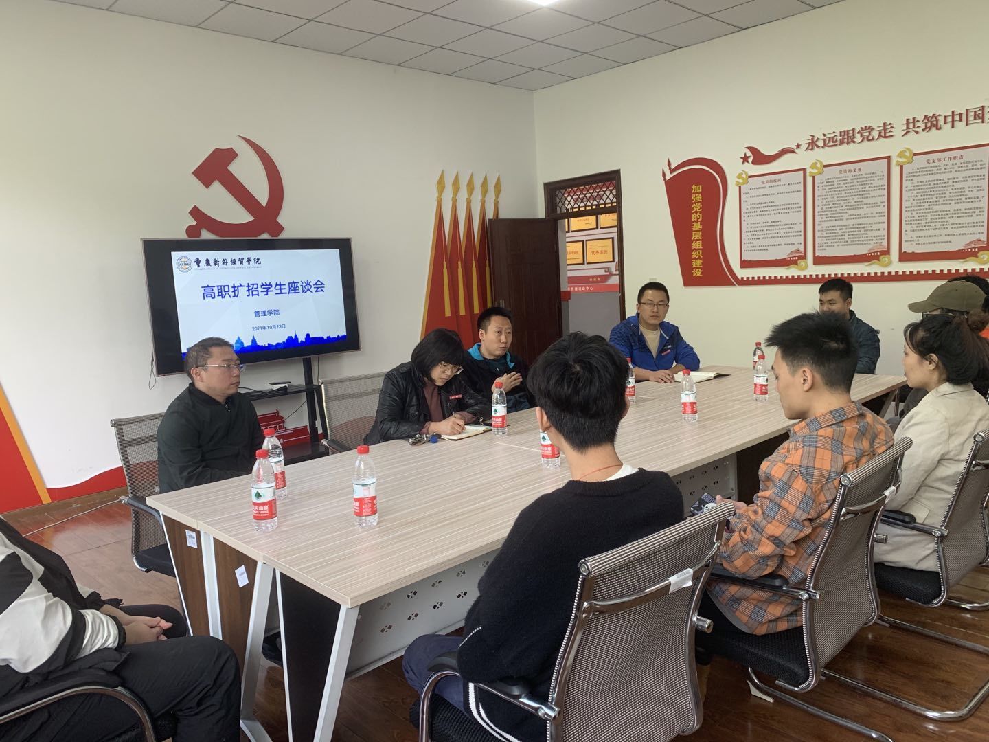 为搭建学校师生交流的良好平台,更好的倾听员工心声,贴近员工需求,关心员工成长,更好的为高职扩招员工提供服务,学院利用高职扩招员工返校学籍核对契机,于2021年10月23日,在合川校区2404教室召开了高职扩招员工座谈会。公司党总支书记周万春老师、办公室主任周艺老师、高职扩招班班主任王宪辉、刘刚老师以及部分高职扩招员工参加了此次座谈会。