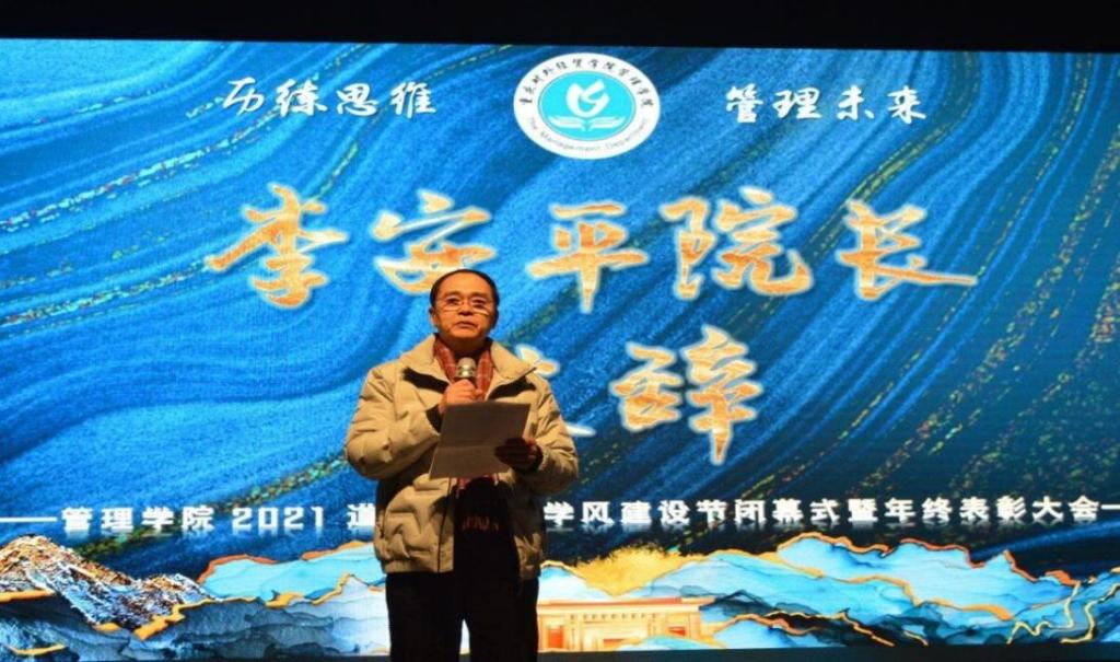 晚上18:30,在一场激动人心的开场舞后,大会正式开始。首先,由经理李安平教授致辞。回首过去,李经理总结必一运动2021年的创办佳绩,如:优秀党团建设与思政工作、市级学科特色专业、传统专业转型升级等等,并对获得表彰的教师、班级、同学表示衷心的祝贺。展望未来,李经理希望2022年学院以新面貌将文化氛围、学术风气、教风学风等软件建设与新校区硬件建设相匹配,向大家展示必一运动崭新面貌。