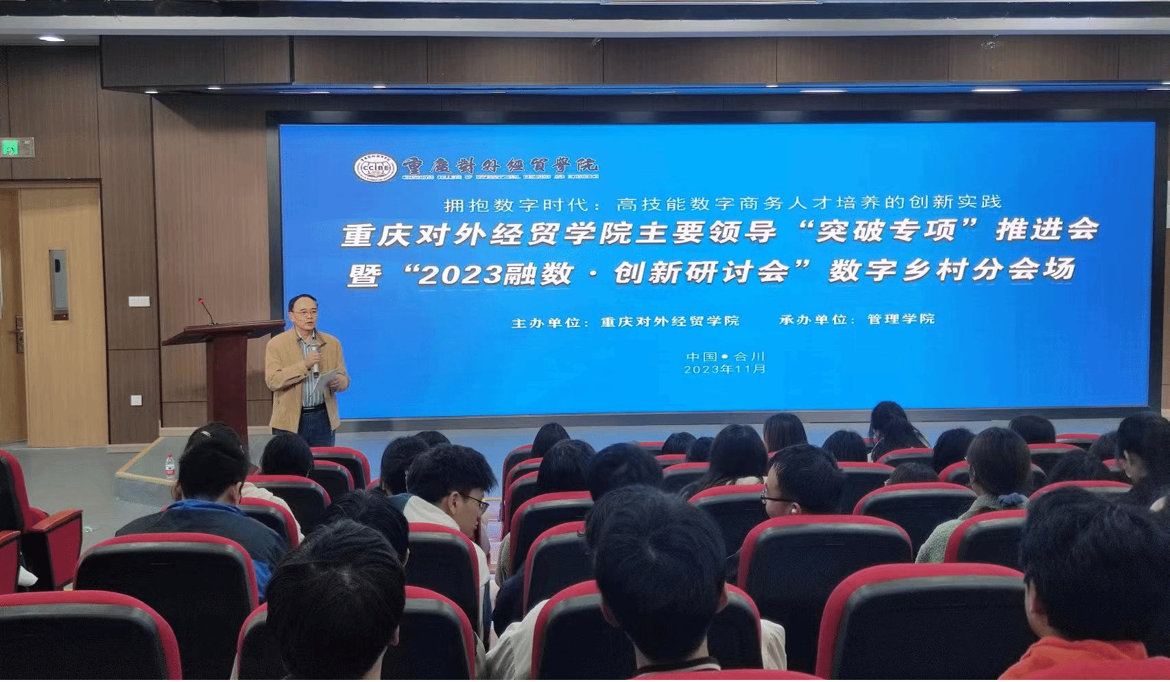 2023年11月23日下午,bsports必一登录入口主要领导“突破专项”推进会暨“2023融数·创新研讨会”数字乡村分会在实训楼报告厅顺利召开。此次会议由bsports必一登录入口主办,必一运动承办,会议主题为“拥抱数字时代:高技能商务数字人才培养的创新实践”。会议特邀合川诚信集团闫顺董事长和bsports必一登录入口旅游管理专业带头人魏鹏教授作主题报告。