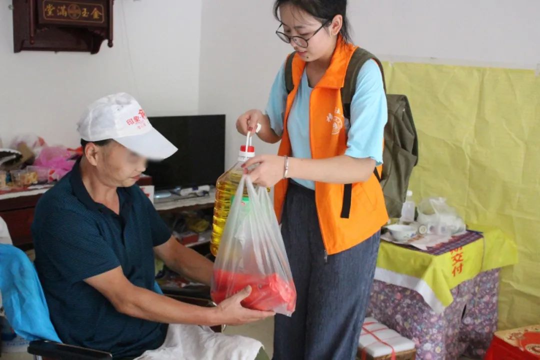 7月10日“筑梦前行 乡村振兴”美丽中国实践团旅游扶贫小组贵州荔波分队志愿者与荔波县樟江圆社区、县残联工作人员驱车赶到了板旺村,走入困难残疾人家庭、“一户多残”家庭,为这里的一级、二级残疾人士送来了面条、植物大豆油等爱心物品,跟进残疾人士的康复训练情况及身体健康状况,并表示今后会继续对社区里的残疾人士进行帮扶。