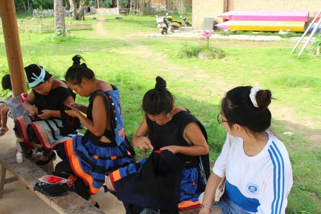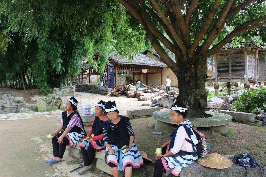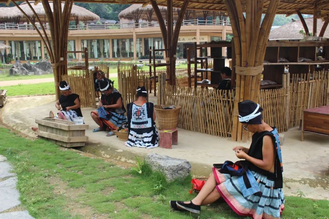 走进瑶寨,志愿者们看到身着黑色绣花短衫、白色肥臀瘦脚裤的阿哥,阿妹则穿着两片瑶族服饰和绣有几何图案的过膝褶裙在凉亭下闲谈休息,几位正在缝制瑶族服饰的村民深情地为志愿者们讲述了“七迁”出深山的脱贫攻坚奋斗史,当时,一代一代的基层干部接力,付出心血,帮助村民走出极度贫困的深山,而寨子作为传统村落保护下来发展旅游的同时也为贫困劳动力创造了不少就业、增收的机会,搬迁的村民变成了文艺表演队,“瑶绣坊”农民专业合作社也成功开办,曾经在外打工的村民大多决定回乡发展,瑶山乡的变迁无疑是少数民族地区脱贫历程的一个生动缩影。