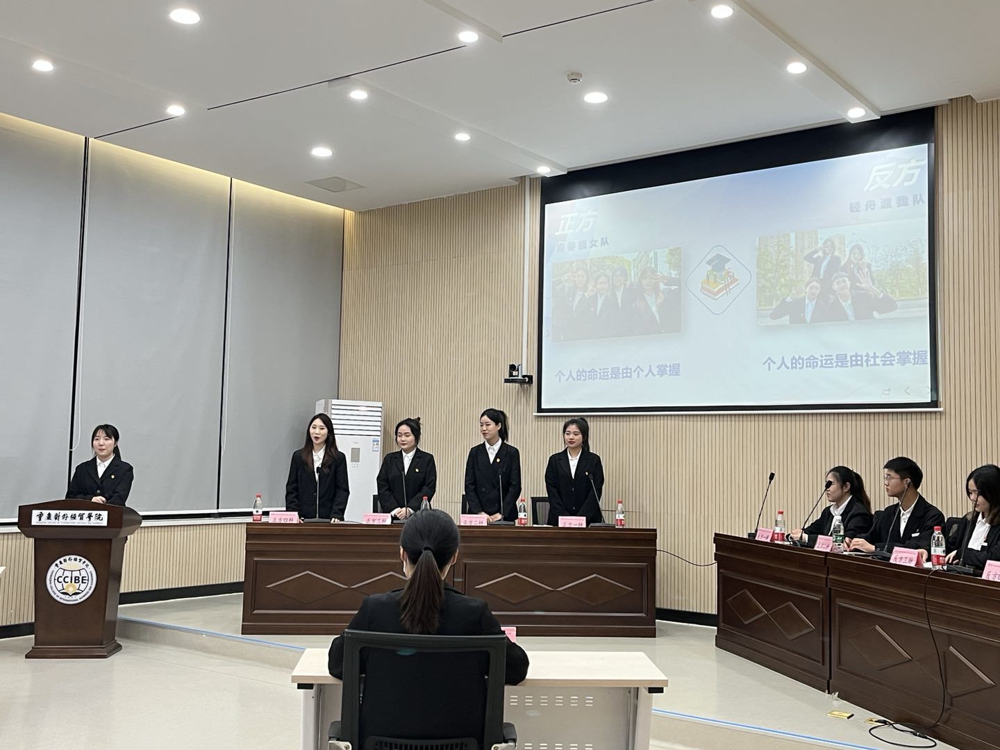 当主持人宣布比赛正式开始后,辩论双方依据规则相继发言,陈述立论的一辩声音洪亮、思维缜密;在随后的攻辩环节中,双方争锋相对、步步紧逼、侃侃而谈,使得现场气氛迅速升温。在最精彩的自由辩论环节,双方辩手旁征博引,展开了激烈的交锋,精妙的观点、犀利的质疑层出不穷,将现场气氛推向高潮。比赛进入总结陈词环节,双方辩手清晰的思路和缜密的逻辑给观众留下了深刻印象。