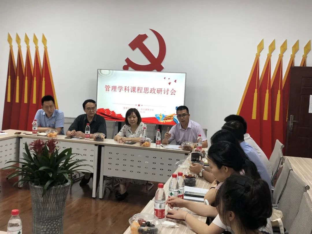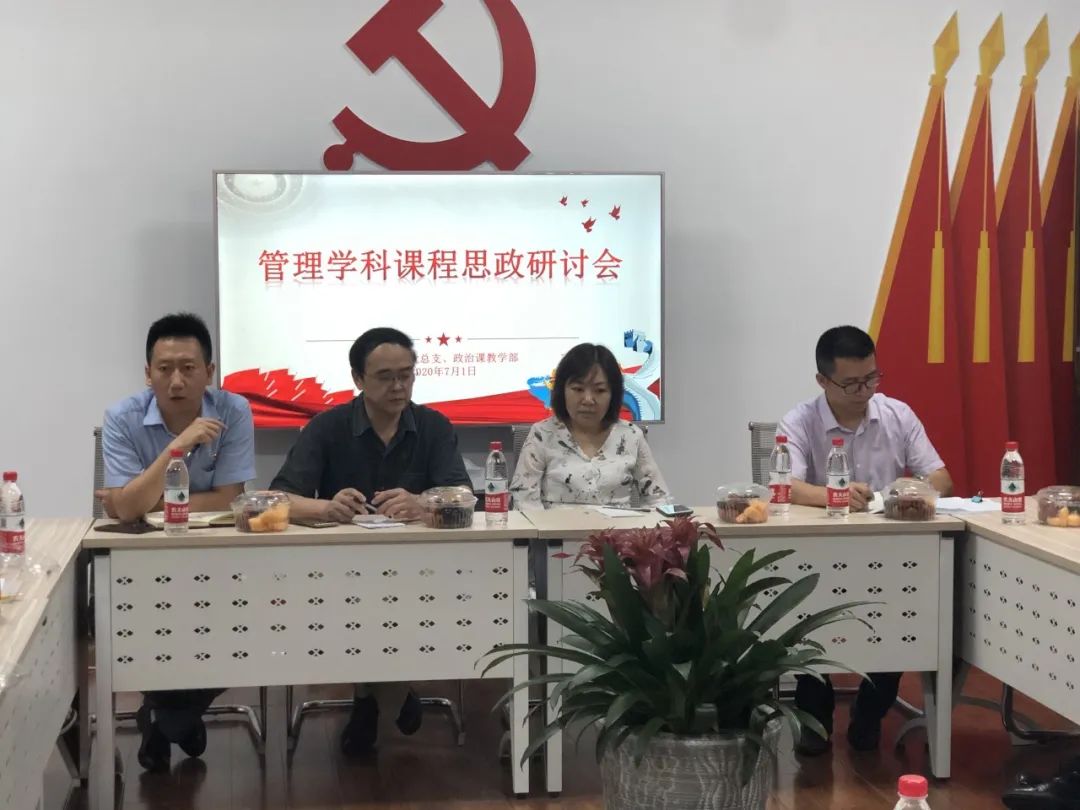 2020年7月1日晚19:30总支与政治课教学部在2404活动室举行管理学科课程思政研讨会。出席讨论会的有:管理学院领导、政治教学部部长、各支部书记、教研室主任、“课程思政”示范课立项教师共计20余人参加,本次会议由周万春书记主持。